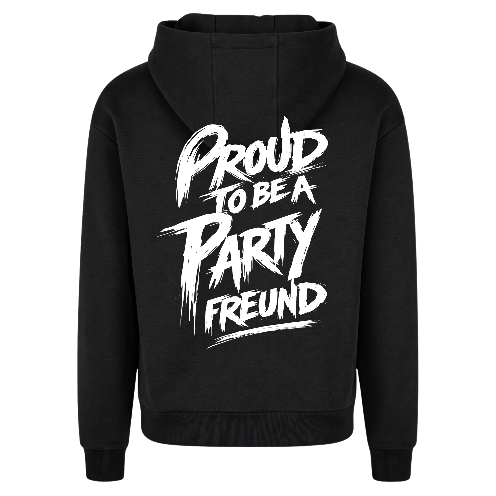 Rückseite: großer Statement-Print „Proud to be a Partyfreund“